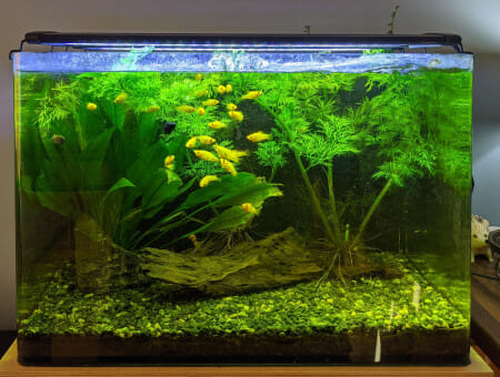 Original setup. The green tint is due to tannin build-up, which I have since decided to filter out.