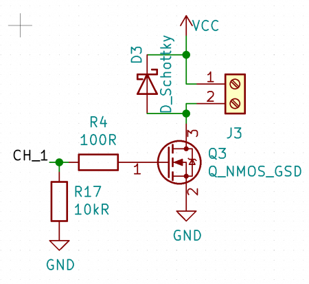 I decided to drive the FET with ESP32 digital output instead of using a MOSFET driver. This is a somewhat risky thing to do, for two reasons –